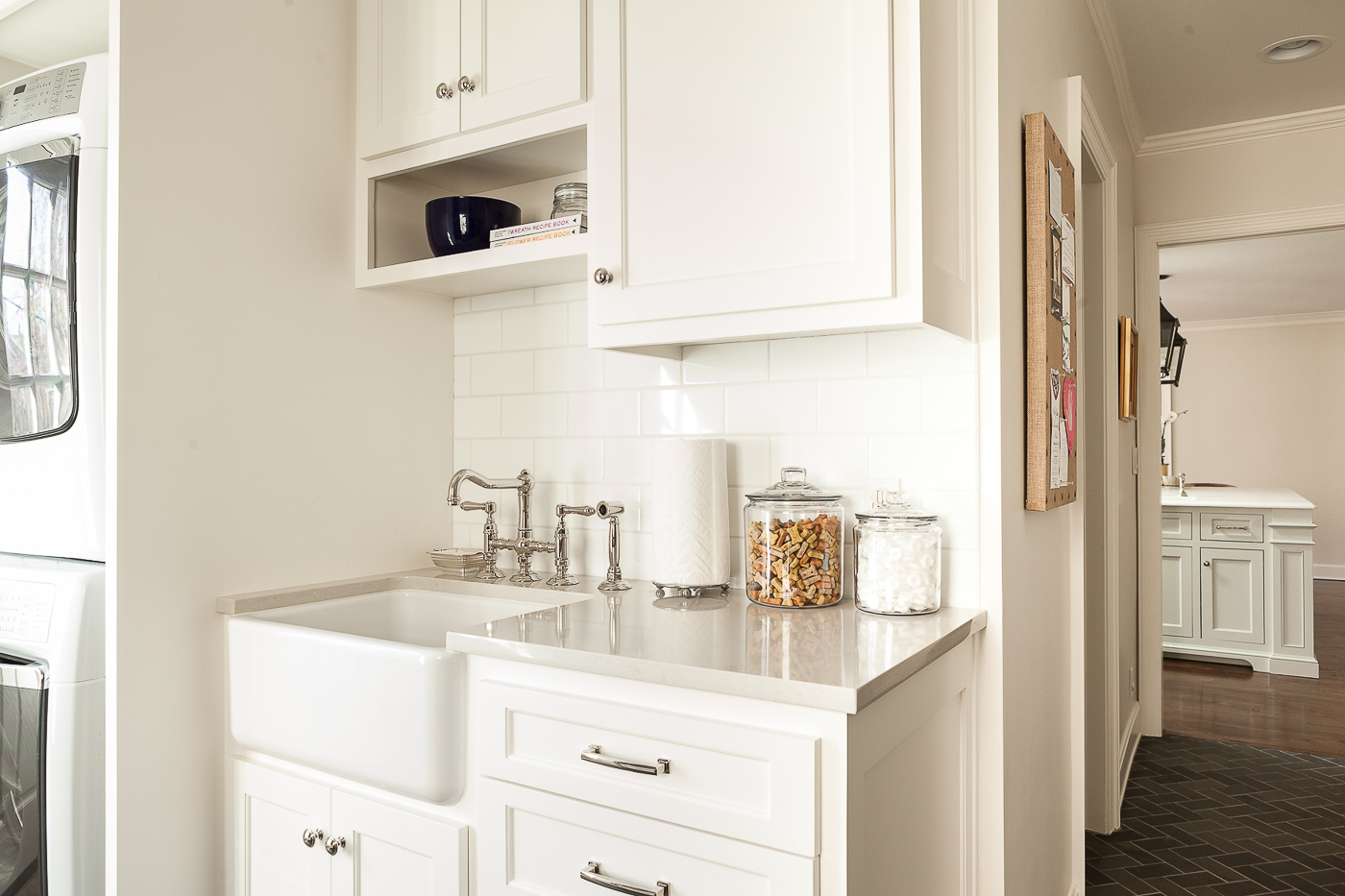 And now looking down that same hallway from the kitchen wouldn’t you agree there’s a slightly better view?! Beyond the glass panes of the new french pocket door, the north wing of the house has become one of this Mission Hills home’s greatest assets. By reworking the location of the garage door we were able to give the space manifold functions. From the family’s predominant entry to the home’s mudroom to the kitchen’s overflow pantry to the guests’ powder bath to the wife’s office to the home’s laundry room, the space is as hard-working as ever!
